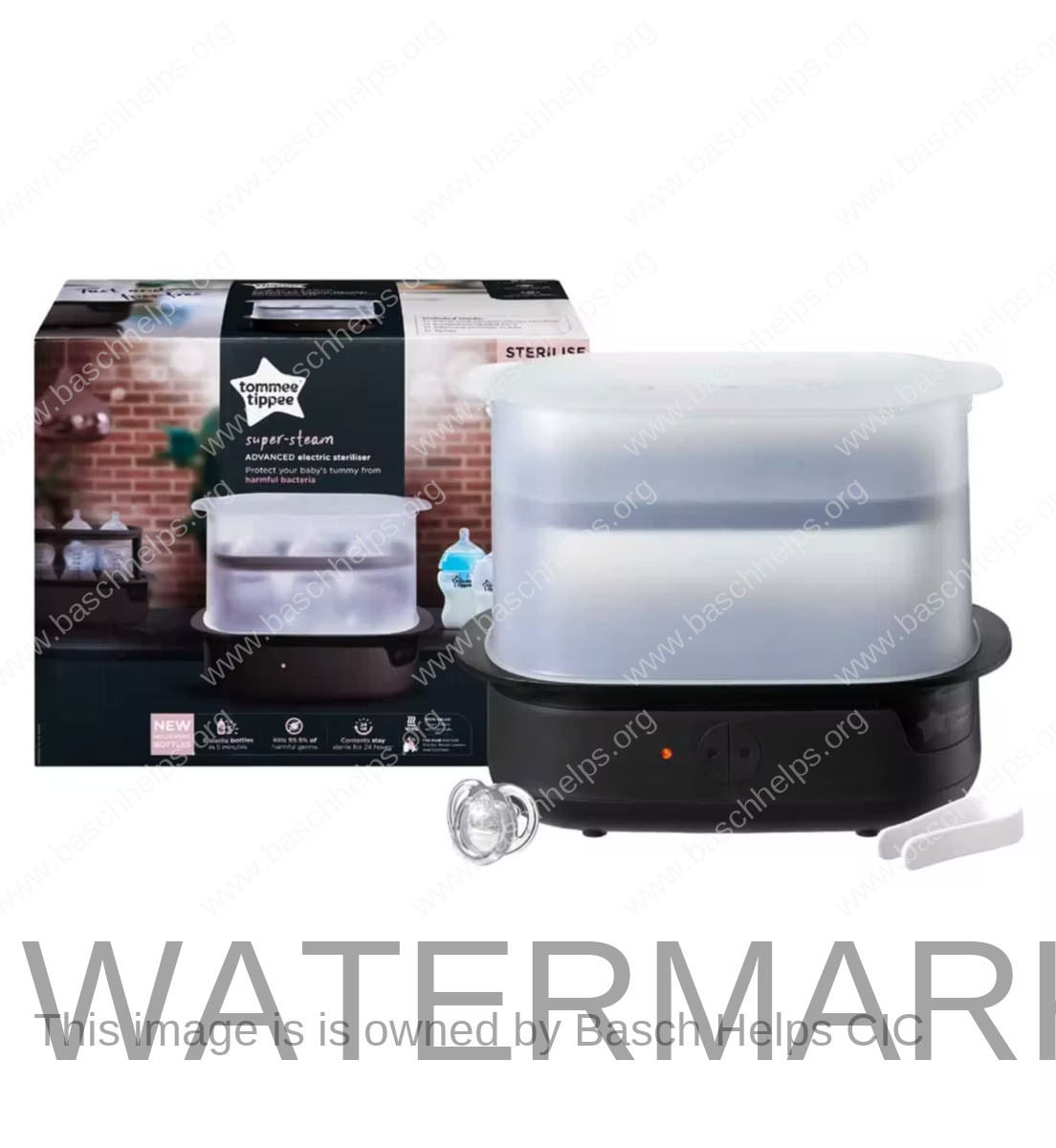 Simple and easy to use – simply add water to steriliser, use the 2-tier rack to put all of your bottles, breast pump parts, soothers and other accessories into the steriliser and turn on to sterilise in 5 minutes.